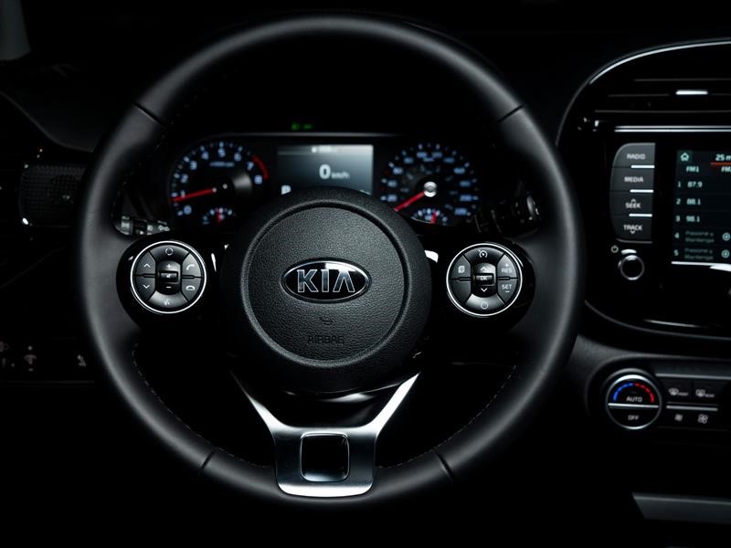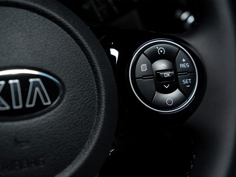 El interior es muy parecido al Soul común, mantiene esa apariencia fresca y divertida, con superficies de formas geométricas, pero siempre con esquinas redondeadas. El primer cambio notorio es la desaparición de la palanca de cambios en favor de un mando circular que hay que girar a la derecha para seleccionar “Drive” o bien a la izquierda para “Reversa”. Para elegir la posición “Parking” es necesario oprimir un botón que está en la parte superior del control.