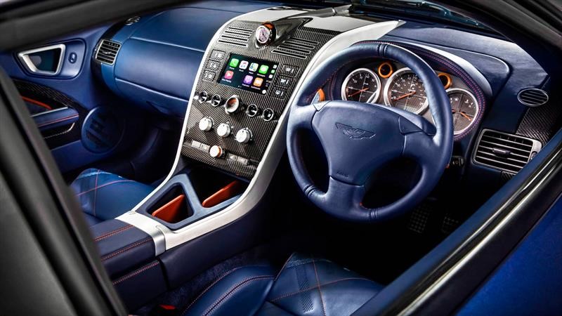 Por dentro también hay mano de diseñador, enfocado más en combinar texturas y colores, y dotar al Vanquish de una elegancia más moderna. Se utiliza un patrón de costuras exclusivo a través de todo el habitáculo, se eliminaron los asientos traseros para dejar más lugar a los pasajeros de adelante y ampliar la cajuela, se incorpora un nuevo sistema de infoentretenimiento de 8” con Apple CarPlay y Android Auto, y se obsequía un elegante reloj Bremont que es removible.