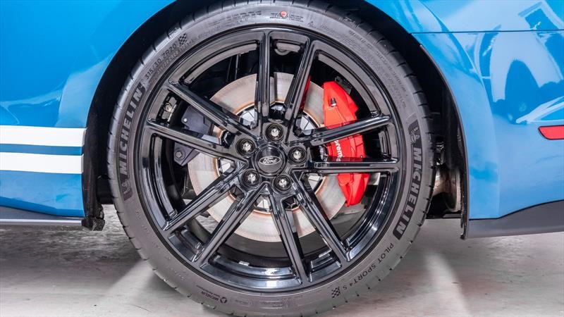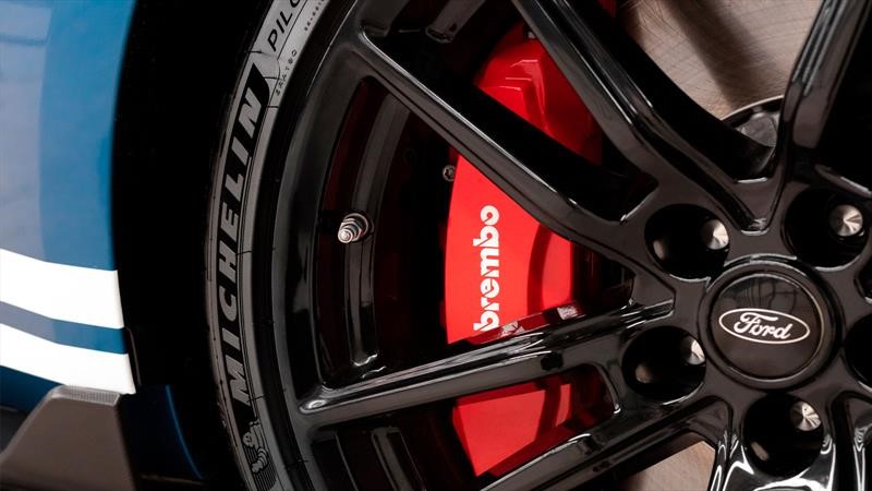 La tracción continúa en la parte trasera, los frenos de la marca Brembo ahora son de seis pistones, lo que quiere decir que son mucho más grandes y eficientes; posee una suspensión adaptativa (MagneRide) por Ford Performance, que se puede regular en función de las necesidades del conductor.