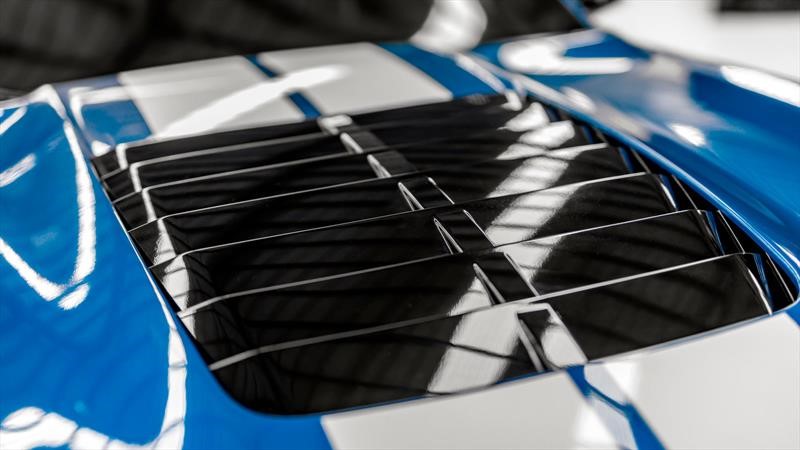 Posee fascias y alerón deportivos, una serie de ventilas en el cofre que dan soporte al sistema de enfriamiento, rines exclusivos de 20 pulgadas en color negro montados sobre neumáticos Michelin Pilot Sport Cup 2, calipers rojos y por supuesto los distintivos de la versión Shelby en costados, parrilla, cajuela, volante, tablero y asientos.