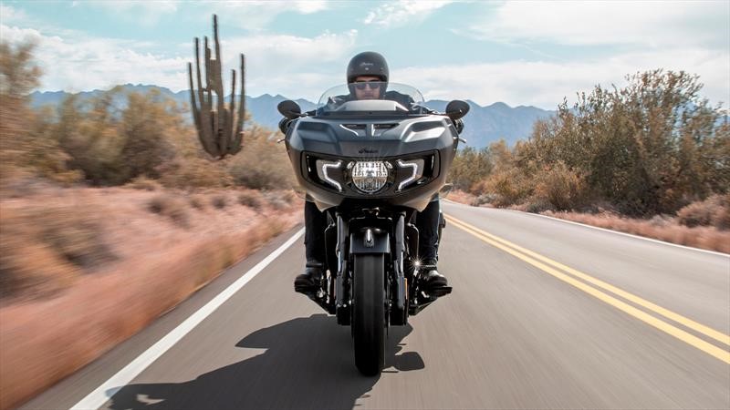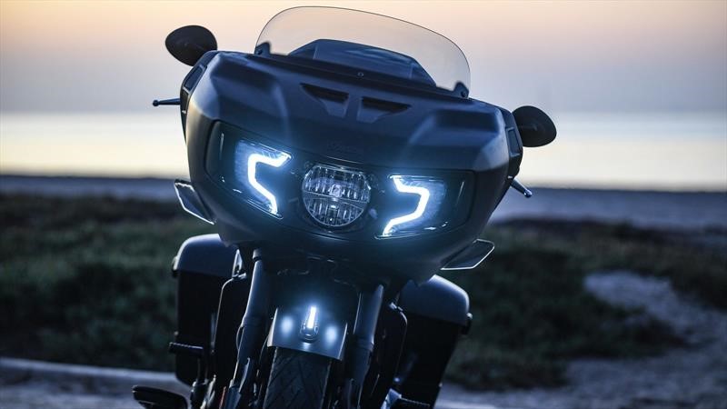 Pero vamos por partes, esta bagger cuenta como puedes ver con formas más angulosas y un carenado frontal inmenso que alberga un juego de luces LED que le quedan muy bien. En cuanto a la apariencia llega en tres versiones: “normal”, Dark Horse, con los tonos mate y Limited con pinturas especiales perladas, con precios de entrada de $489,900, $529,900 y $529,900 pesos mexicanos. En efecto, nada barata.