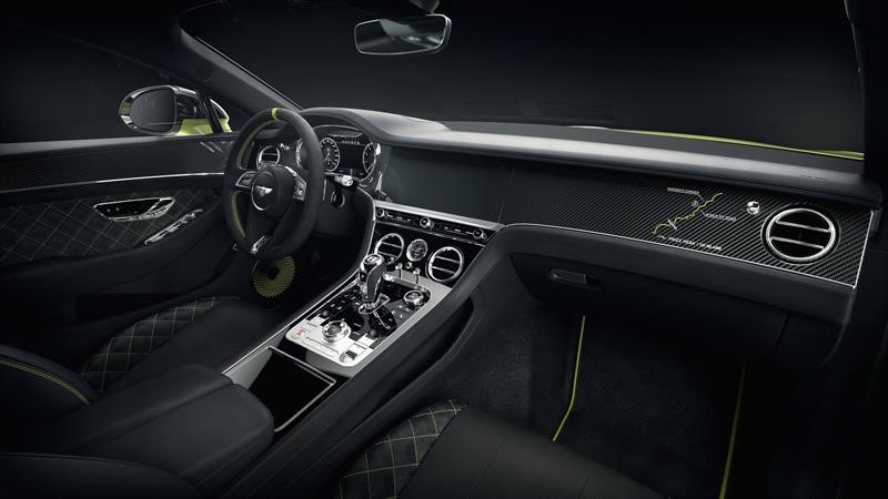 Compuesta por sólo 15 unidades, este Limited Edition Continental GT se distingue por un kit de carrocería de fibra de carbono y la llamativa pintura verde (Radium by Mulliner), que refleja el mismo tono utilizado en el automóvil que rompió la marca.