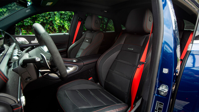 Como es de esperar, esta versión tiene algunos distintivos que hablan de un vehículo deportivo como cinturones de seguridad y pespuntes en rojo, así como pedales, volante AMG (Napa/microfibra) y asientos deportivos (forrados en cuero ártico /microfibra), además de decoraciones en fibra de carbono e inciertos en madera de roble antracita de poros abiertos.