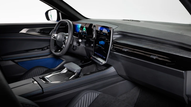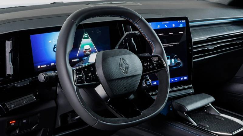 La doble pantalla openR del Renault Rafale se compone de dos piezas en forma de L: una pantalla TFT horizontal de 12,3 pulgadas como cuadro de instrumentos y una pantalla táctil vertical de 12 pulgadas en el centro del tablero para el sistema de infoentretenimiento.